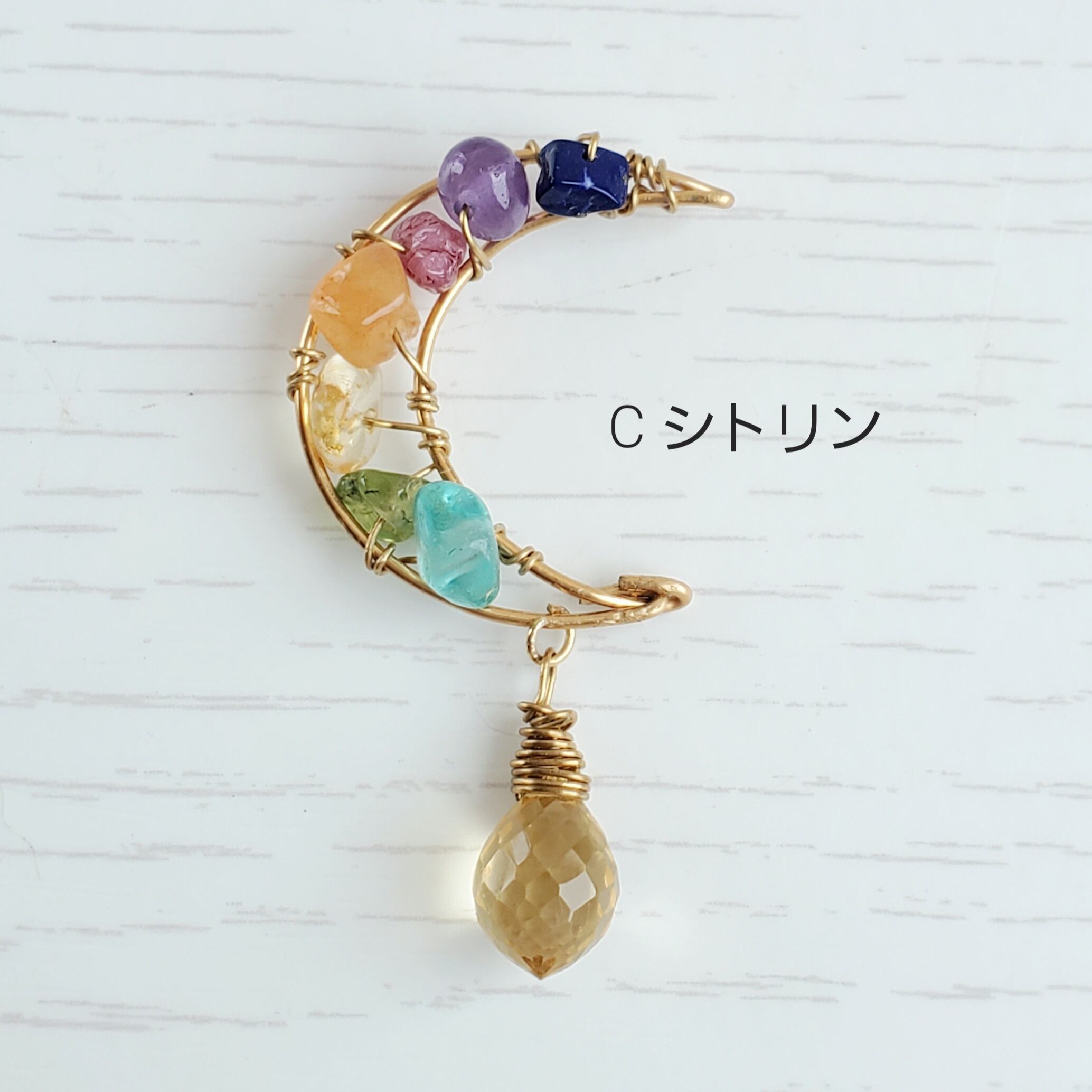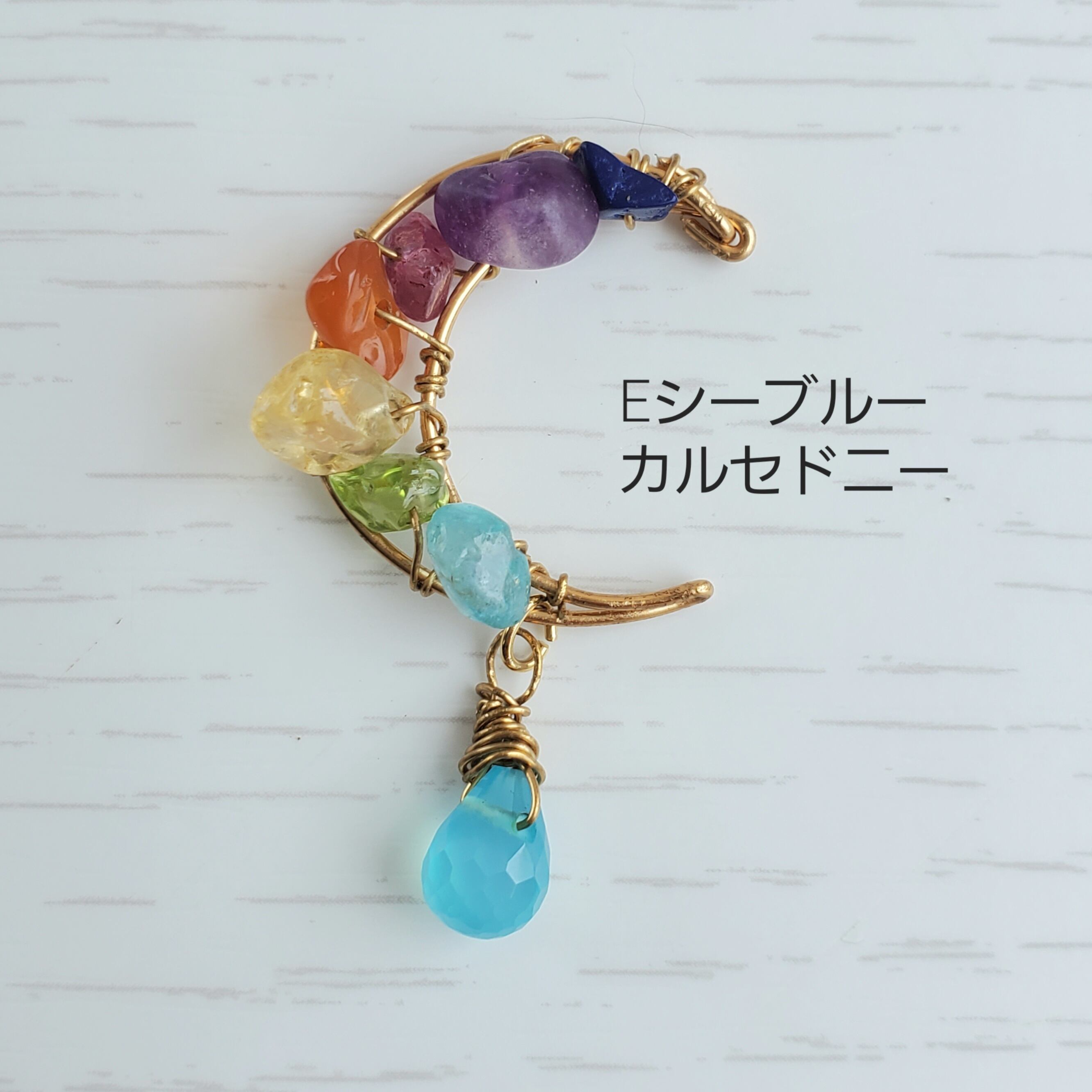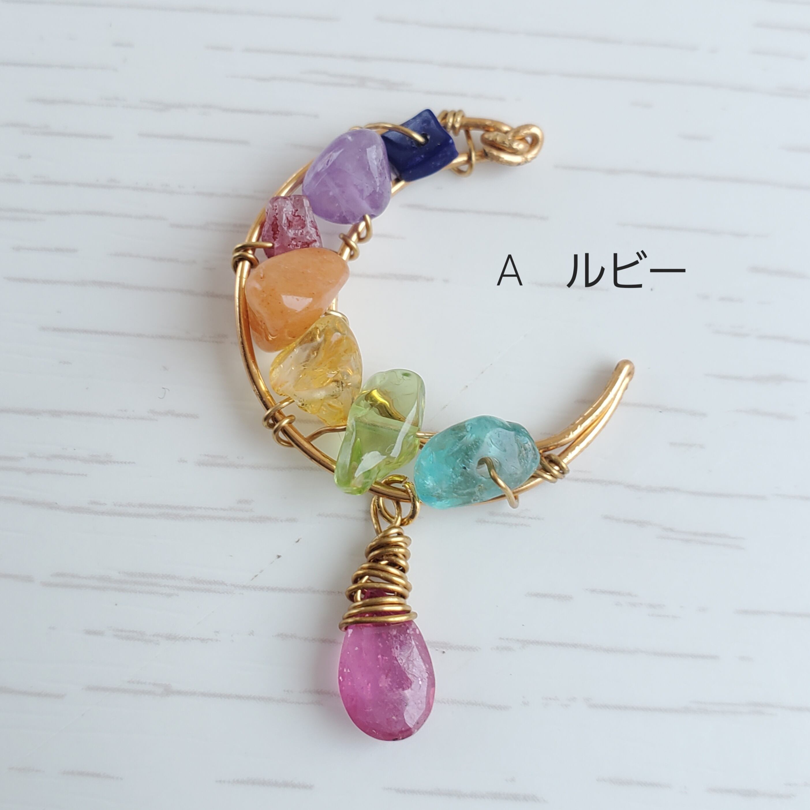 人気の月モチーフに7色のさざれ天然石を装飾して