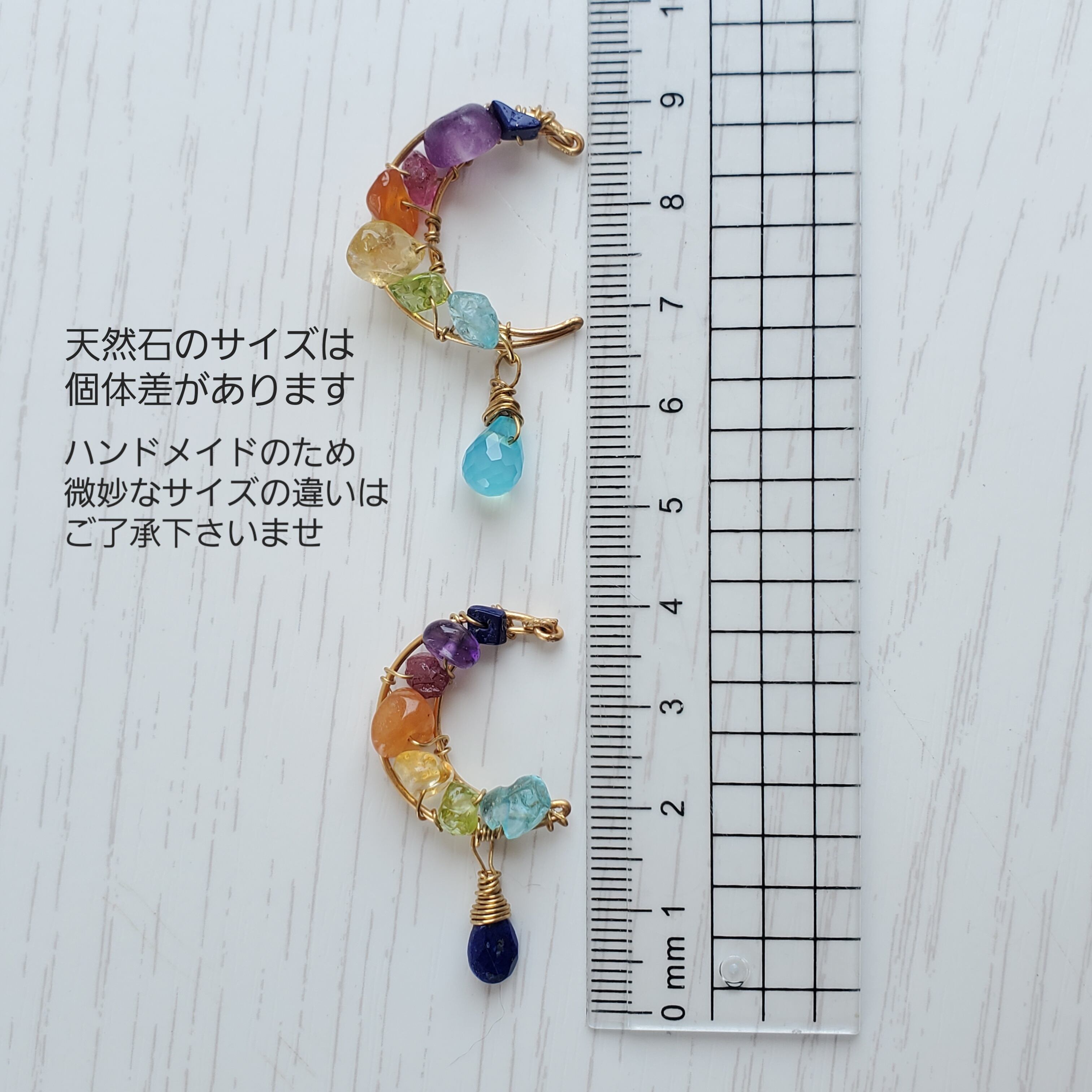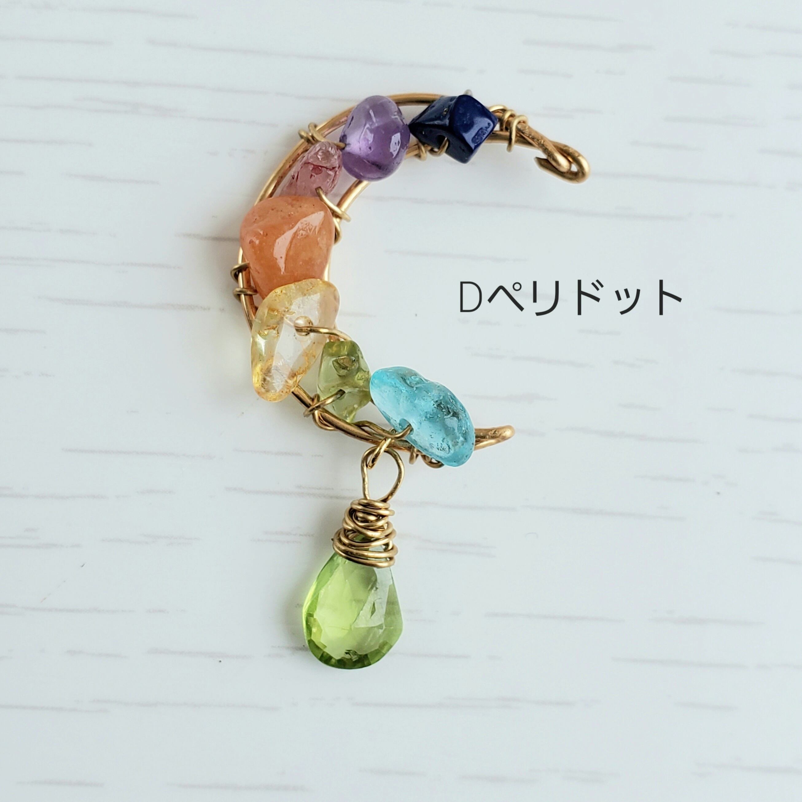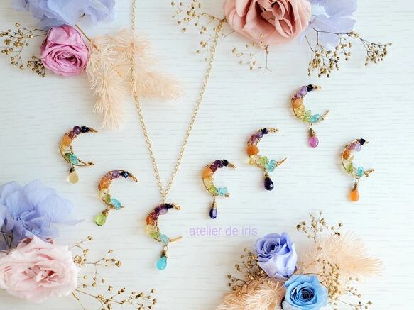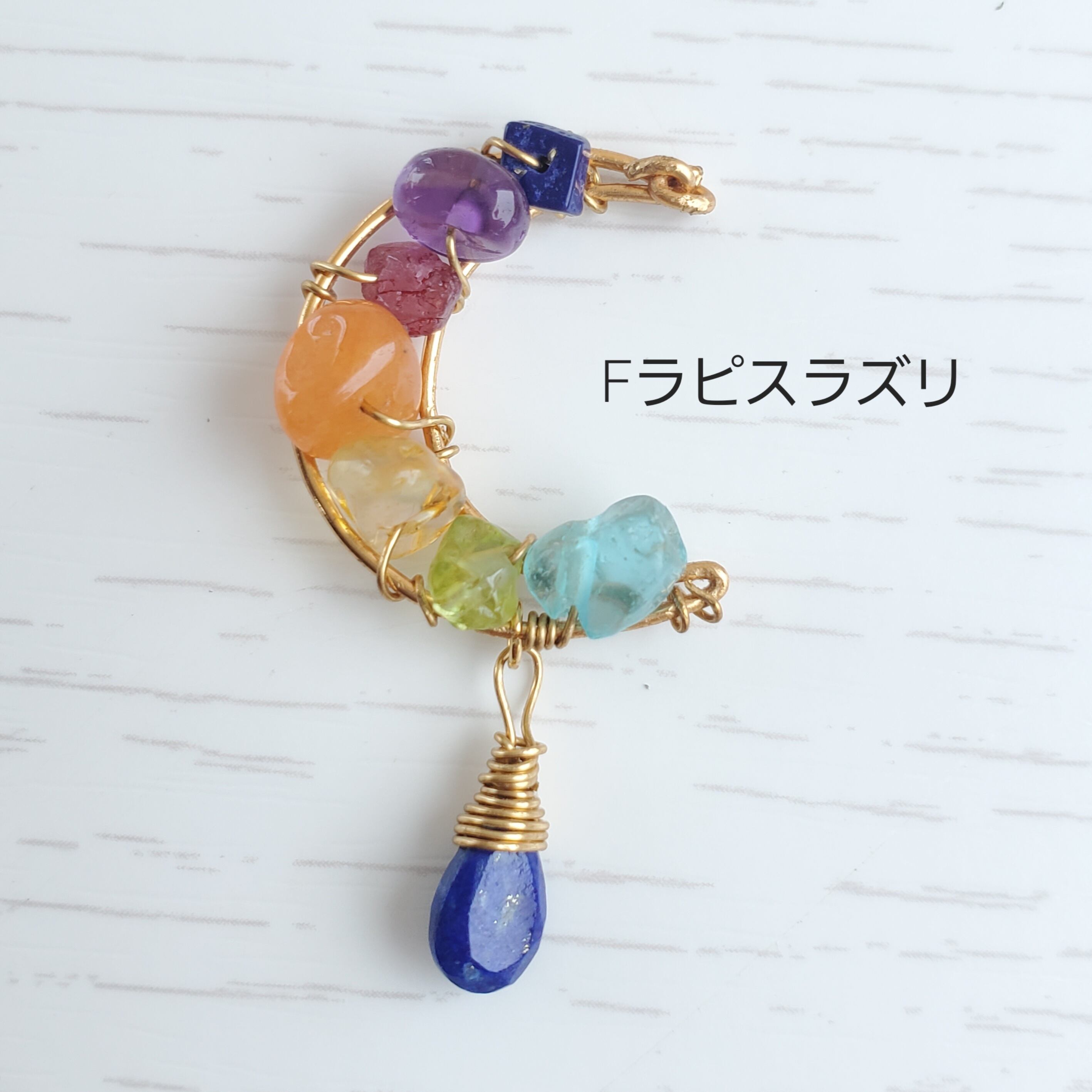 人気の月モチーフに7色のさざれ天然石を装飾して