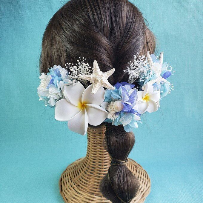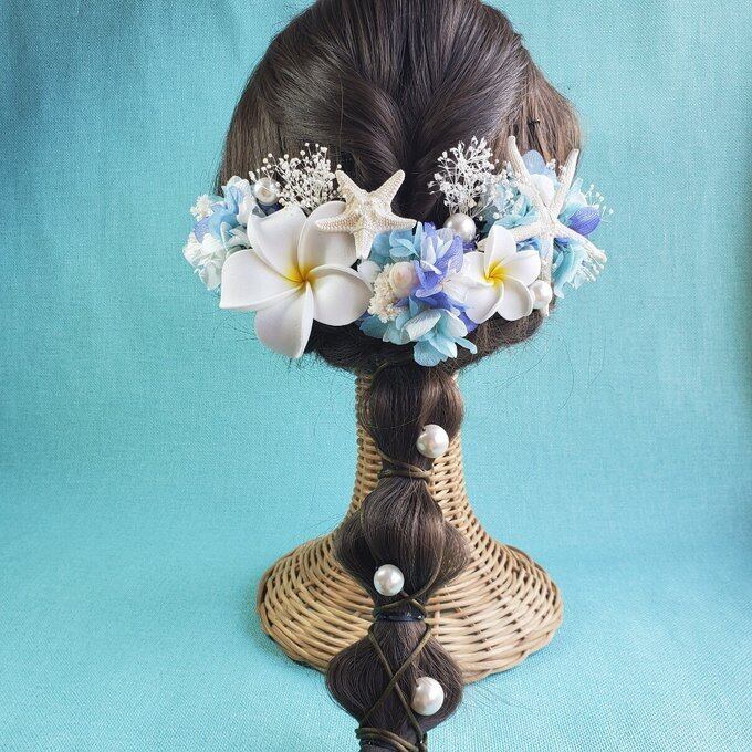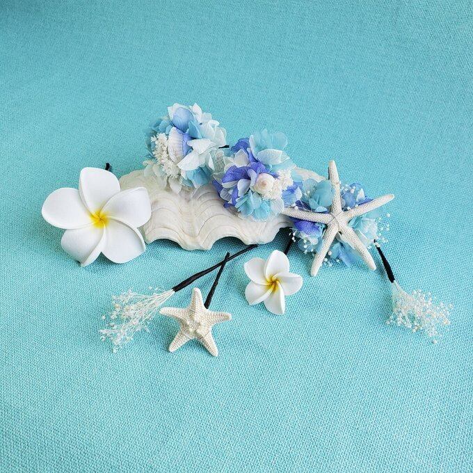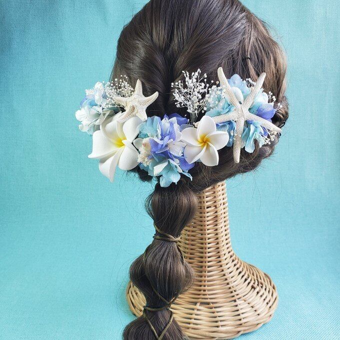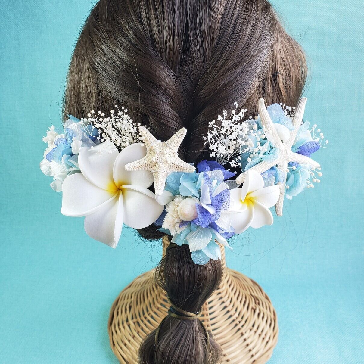 プルメリア スターフィッシュ ヘッドドレス 花 髪飾り 結婚式 ホワイト ブルー リゾート