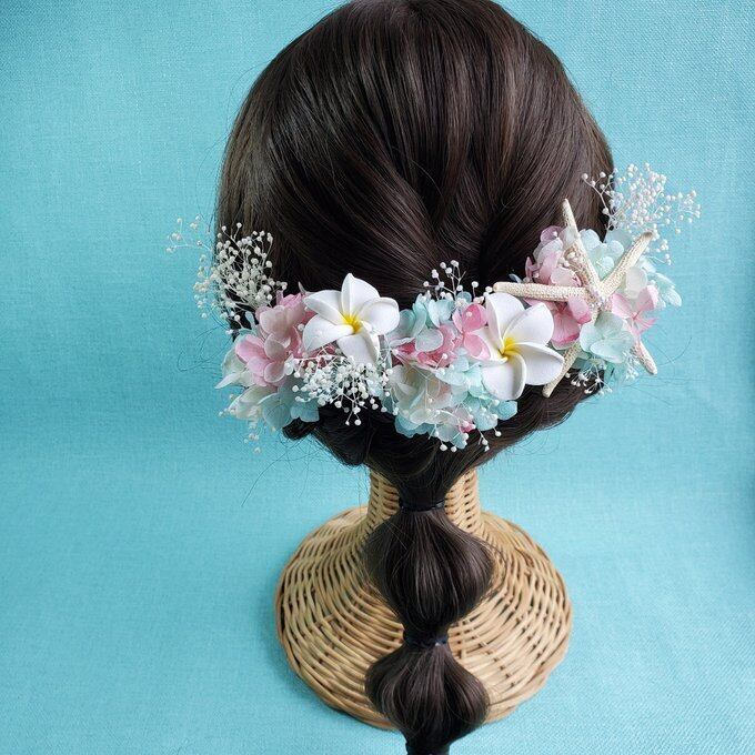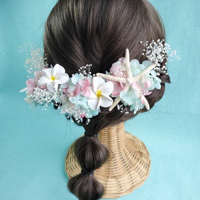 プルメリア ピンク イエロー エメラルドグリーン スターフィッシュ ヒトデ 髪飾り 結婚式 リゾート ウェディング 発表会 wedding hair accessories