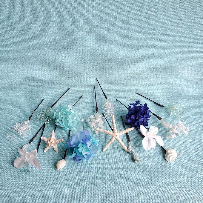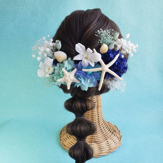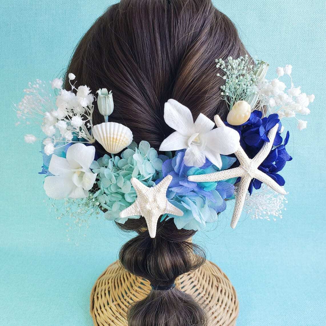 マーメイド 結婚式ヘア ヒトデ 夏 海 貝殻 シェル ドライフラワー